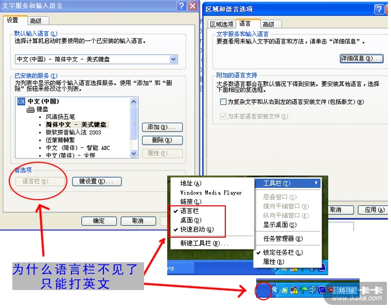 [(中毒后就不见了)——(属性——工具栏——语言栏)打勾了]