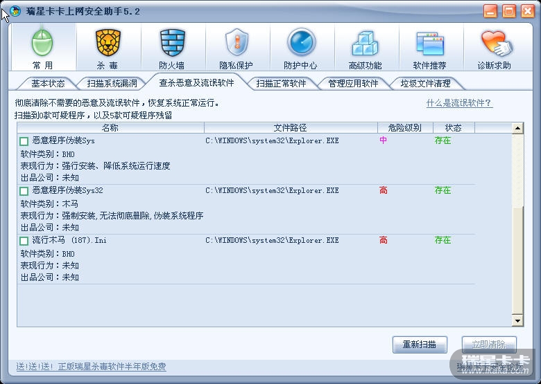 [求助] 我的卡卡,发现恶意流氓软件5个,清除不了!