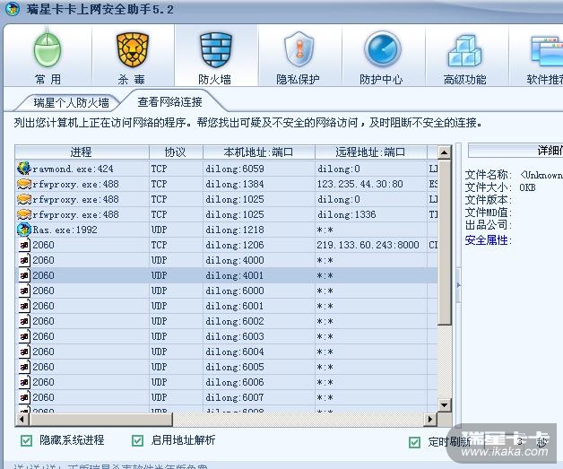 [求助] 我的卡卡助手中查看网络连接里面多了几个2060进程