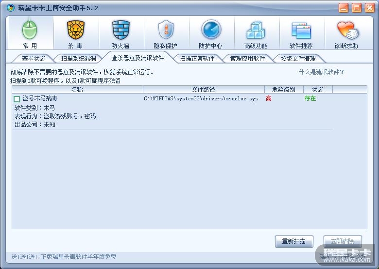 [求助] 无法清除并可随时关掉瑞星杀毒软件的木马病毒