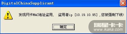 最近上线后老是有提示说:网卡mac地址被盗用,盗用者IP为******(其中该IP既有内网的,也有外网的),被强制下线
