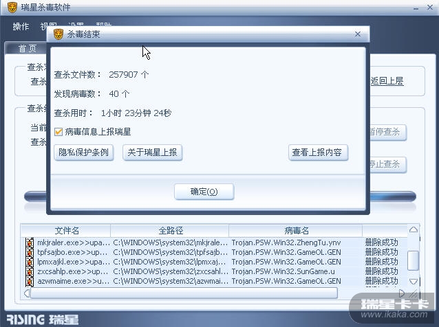 昨天  瑞星竟然杀出40个病毒    并提示重启后删除(如下图)重启后  小伞独爱红色
