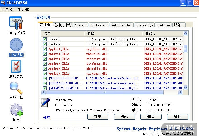 在扫日志的SRENG工具》启动项目》注册表》里面找下面项目删除:
