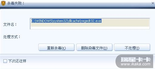 瑞星更本杀不掉,只能删除文件,只要是EXE文件,基本上都被感染了,而且瑞星现在搞的我各种播放器,IE,QQ,等软件无法正常运行。
