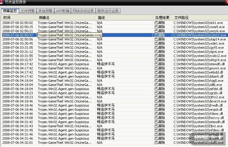 中了病毒..高手帮忙看.用360.超级巡警.卡巴也杀过.重装过C盘.都没用...
