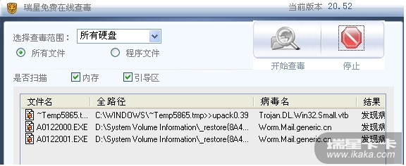 图片上的病毒是我在线查毒时显示出来的,不过在病毒库里和网上都查不到资料,请高手看看是什么病毒,并告知一下怎么解决,已附日志.