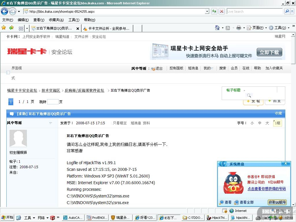 请问怎么会这样呢,我传上我的扫描日志,请高手分析一下.