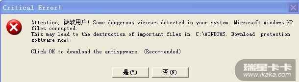 我是一个不懂英语的汉人 ,刚才不小心点击了一下googel搜索下的一个歪国网站。然后就将这个流氓ie-av.exe安装上了。  找不到卸载程序,上网的时候第一个页面可以打开。打开第二个页面的时候就会出现提醒页面:大概的意思就是:“你是微软用户你电脑有病毒需要安装这个安全工具”我刚开始还以为是微软的补丁呢!可是安装以后发现根本不是哪么回事!每次打开自己电脑任何一个盘符的时候没有什么可以打开,]可是当要打开文件夹的时候就会出现提醒你安装或是下载这个流氓!点击不下载时就会出现系统提示错误。正在写入错误信息。