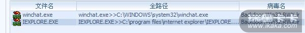 我的IEXPLORE和WINCHAT都中了Backdoor.Win32.RWX.lr这个病毒.用瑞星毒杀病毒时,不到一分钟就可以把这两个毒查出,并显示清除成功的.但重启电脑后再杀.这两个毒又出一了. 请问有什么办法解决吗?是中了GRAY BIRD吗?