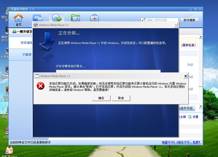 我用讯雷助手升级Windows Media Player 却发生错误。