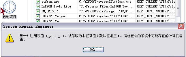 谢谢,你看的是一楼的日志了,HONEY的问题我已经用卡卡解决了。现在还是“我的电脑”属性看不了。另外重新扫描了一下,发现提示有很多入口点错误,并且点启动项目提示说一个注册表值非正常,可能有病毒等,感觉是刚才卡卡删除木马导致的。附上一个SRENG的报错图,和新的扫描日志。