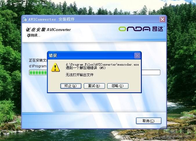本人经常使用AVIConverter来转换视频,以前从没有出现过这个病毒,一直使用正常。8月2号,我像平时一样转换文件,转换途中被提示有病毒(当时没有截图),删除之后无法再使用转换功能,之后删了AVIConverter再装,一样提示有病毒,后来选择忽视并一直这样处理,但是还是没有办法转换视频。装同一个地方就被提示无法解压(见截图2),所以换了地方装,装了之后查毒,依然有提示(见截图1),而且无法使用转换器(见截图3、4)