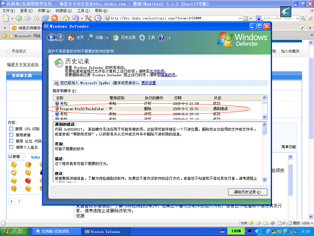 windows defender查出来有病毒,可就是杀不掉,360什么的也都说是流氓可是也都没办法彻底删除。