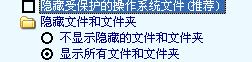 随便打开一个文件夹=》工具=》文件夹选项=》查看=》把 隐藏受保护的操作文件 勾去掉  选中显示所有文件和文件夹 确定