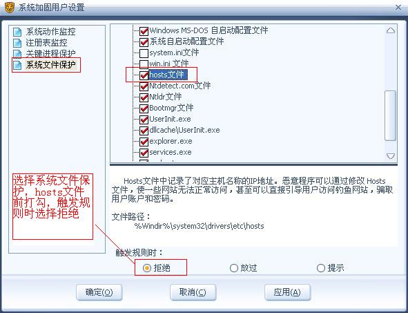 保护hosts文件的设置: