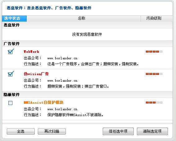 也清除了~~今天我还断网杀毒了~~毒也没查出来~但是又跳出来广告了~~要崩溃了我~~该死的广告商啊!!!!!!!!!阴险!!!!!