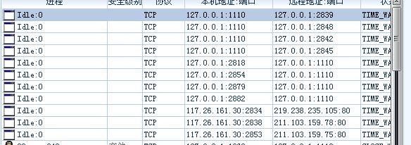 我查过进程、启动项、服务、驱动、IE和资源管理器插件等,都是卡卡助手标志为安全的或有可信任厂商签名的,没有签名的项我也都可以100%确定安全,用最新病毒库的瑞星查毒也没有任何结果,卡卡的流氓软件扫描和系统修复也没有任何扫描结果,瑞星的扫描隐藏进程没有结果,用冰刃和瑞星防火墙查到的也是同样不明TIME_WAIT,最奇怪的就是显示的进程是PID为0的Idle