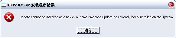 症状2: 将该补丁下载至本地,手动安装时提示"Update cannot be installed as a newer or same timezone upadte has