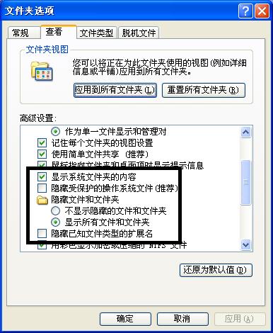 4、如果第一步完成操作后无法显示隐藏文件(可以到C盘根目录下看看,如果没有发现boot.ini之类的隐藏文件,那么说明第一步“显示隐藏文件和文件夹”的操作没成功),扫描SRENG日志并上传日志附件。