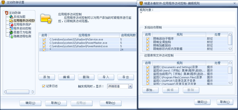 就是瑞星一般是付费用户,那么其默认防护规则就不能成天跳这些提示的,因为不断跳这些提示,几乎绝大多数的付费客户都可能放弃使用瑞星,嫌烦嘛。甚至于还会出现投诉的情况,因为付费的客户使用软件的心理和免费的不一样的。