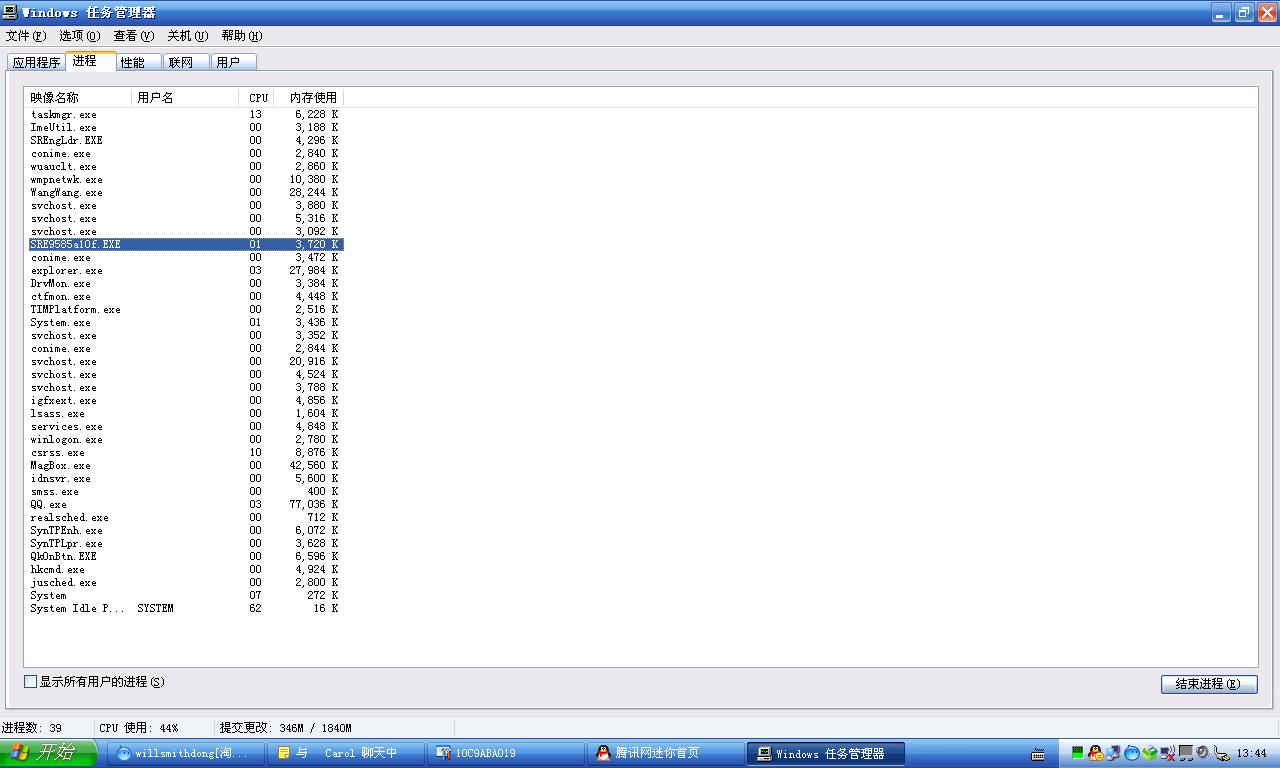 另我刚刚让朋友在家开电脑将进程抓图给我发了过来,但这时已经没有我说的那个后面是括弧里有数字的进程了,详细进程如附件里的图所