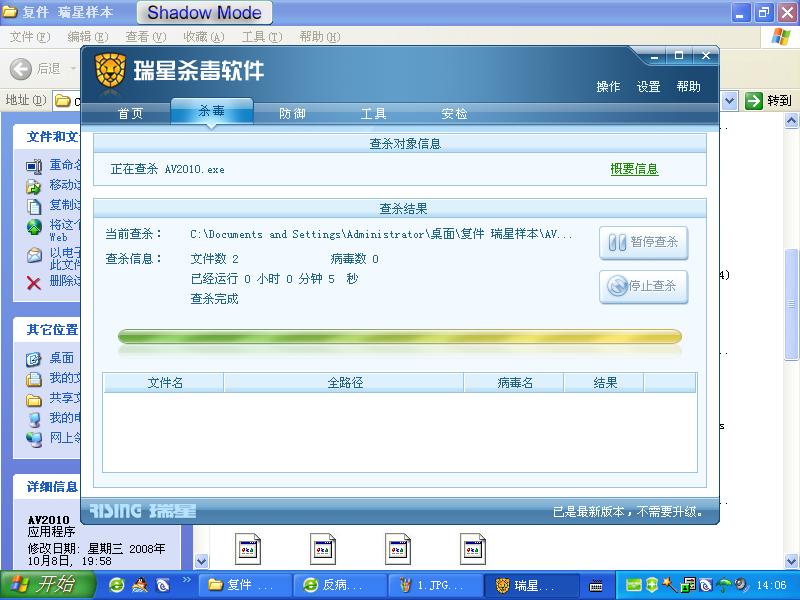 瑞星09查杀结果