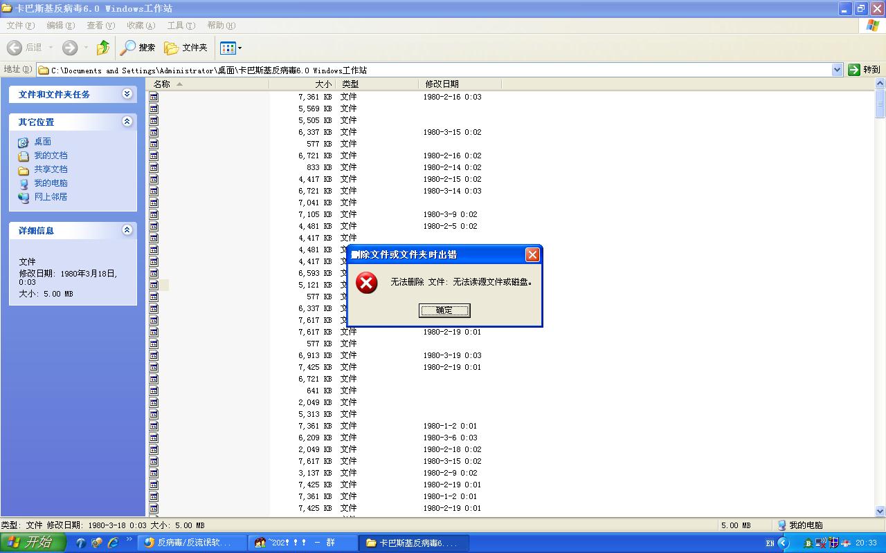 如图``卡巴文件夹变成了这些文件``且不能删除`