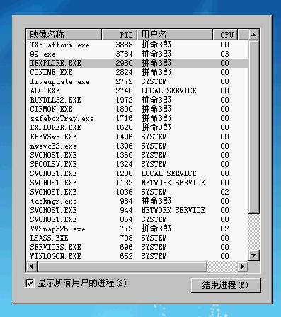 结果弹出命令行窗口,然后进程查看器上面的"菜单栏"不见了.请高手帮我恢复.如下图: