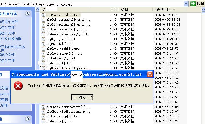 [求助] 为什么用记事本打开cookies下txt提示无权限