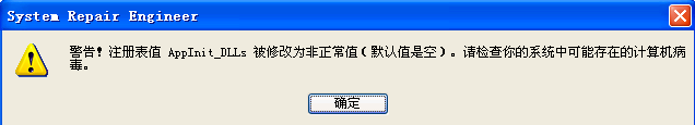 今天打开SREngLdr后,提示AppInit_DLLs值被修改。。