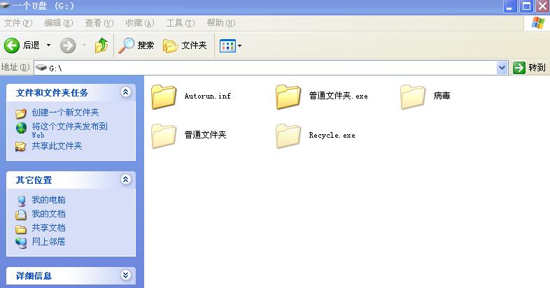 此病毒喜欢把U盘中原有文件夹隐藏,代之以原文件夹同名的.exe格式的文件夹图标,我截了两张图,上传一个病毒压缩.用网上的文件夹病毒专杀没效果.拔了再插上又会出现.请高手帮分析解决.