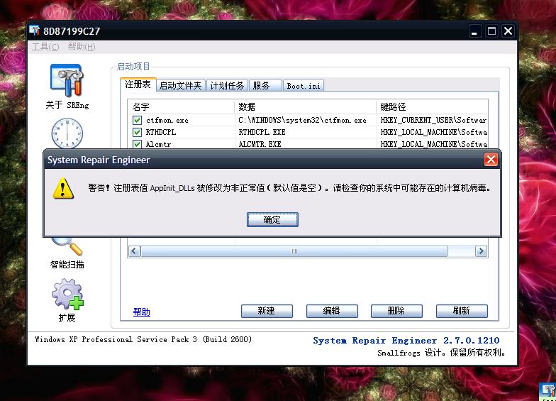 在扫日志的SRENG工具》启动项目》注册表》里面找下面项目删除: