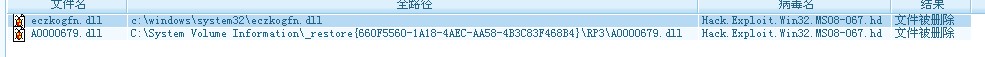 每次开机点击瑞星升级都提示网络失败什么的,我打开瑞星先杀毒,发现有个叫Worm.Win32.MS08-067.a的病毒,感染的文件是c:\winows\system32\svchost.exe,查出来两个,都显示清除成功,但是重启电脑还是不行,MS08-067补丁在查杀病毒清除成功以后已经安装了打过,已经八天了,今天早上开机查病毒的时候,又发现了一个问题,可能是刚开始没有注意,病毒数显示三个,但是看到的只有c:\winows\system32\svchost.exe这两个
