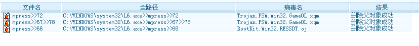 不好意思,前面有些发错了,现在的第一个图是安全模式下无法删除的病毒,现在用瑞星重新杀一次后,得到了第二个图的结果,有点奇怪