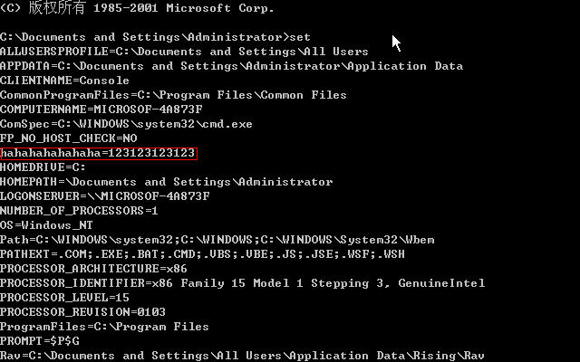 在命令行下输入set,按回车便可以查看到现有的变量,你会发现多出了一个hahahahahahaha=123123123123