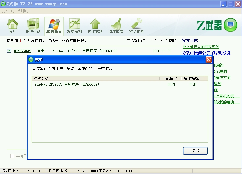 我把迅雷助手,瑞星上的补丁都打全了,只有Z武器上扫描出的一个补丁打不上,是不是它的事啊??