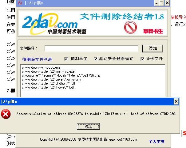 从剪贴板导入不检查路径,导入后在要删除文件上点击右键,选择立刻重启删除,电脑会重启进入DOS界面进行删除操作。运行xdelbox前最好卸载所有可移动存储介质(包括U盘,MP3,手机存储卡等)。