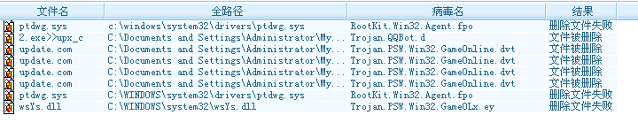 rootkit类病毒是作为驱动存在系统中的,有可能加载在系统进程上,被系统调用的文件是无法被杀毒软件清除的 。