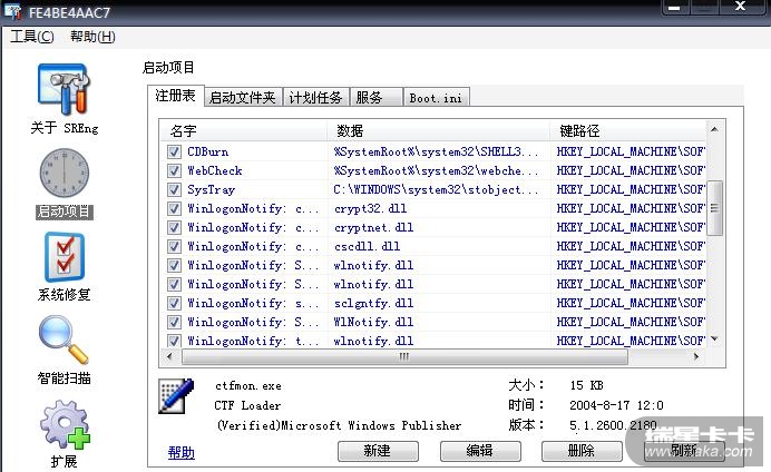 刚刚用SRE扫描启动项,发现有几项是蓝色字体显示的,所以有些怀疑.,