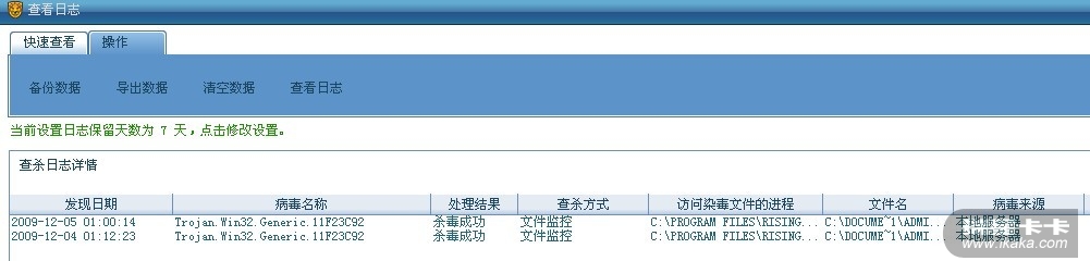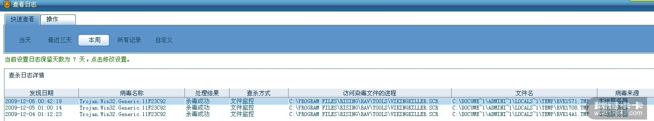 瑞星不能查出来 用威金专杀然后就有这个杀毒日志了 单机的!
