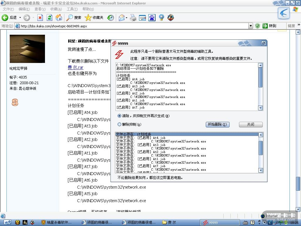 前几天找电影看的时候下了一个软件~没留意就打开了。怎么知道是病毒,用360或瑞星杀了毒后~重新开机又会有!并且主页总是会被篡改成www.054.cc这个网站~