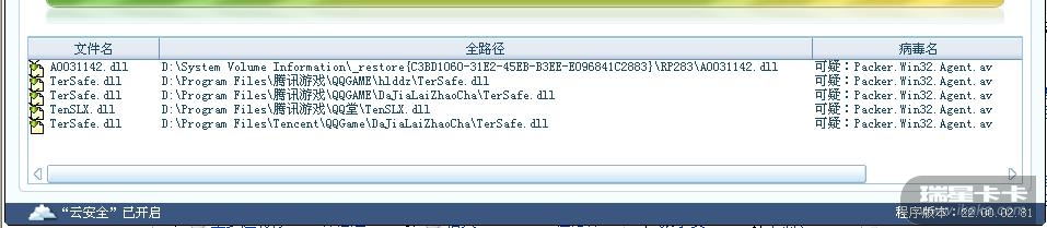 以下图片是我最近用瑞星扫我的电脑查出的一些东西,这些可疑的东西,瑞星说上报"云安全"然后等更新瑞星之后再扫描就会知道是不是可疑文件了.