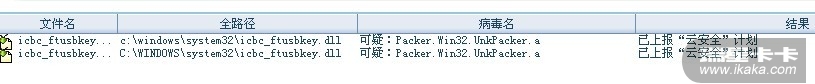 刚才杀毒。报了两个可疑Packer.Win32.UnkPacker.a 。这个是在ICBC的文件下的,想问一下这个对我的网银账户有没有威胁。