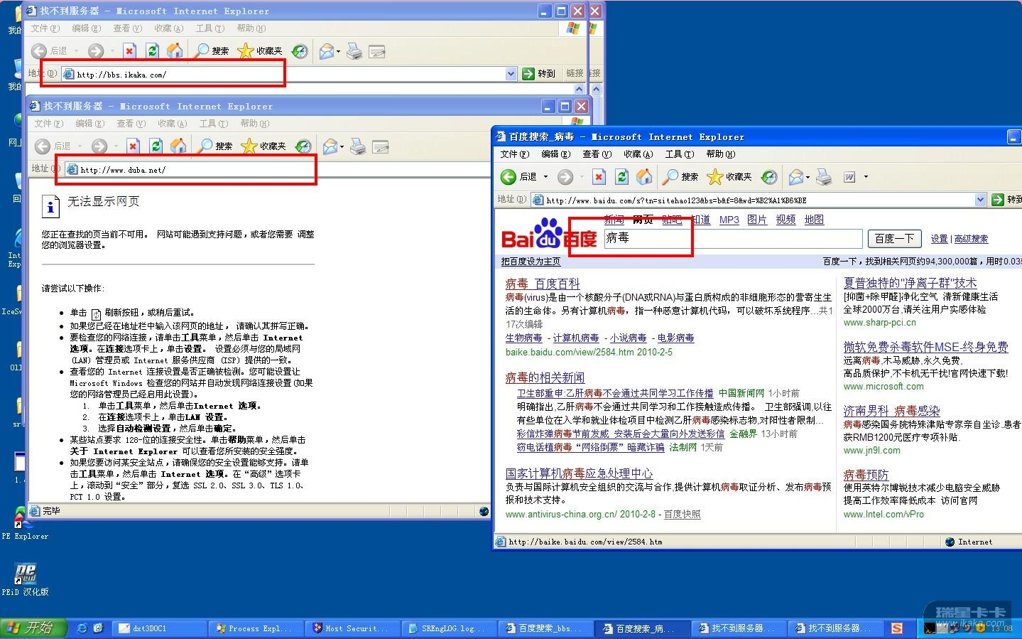 各病毒变种的部分情况描述,可以去看看这两贴:http://bbs.ikaka.com/showtopic-8695965.aspxhttp://bbs.ikaka.com/showtopic-8695940.aspx用户系统信息:Mozilla/4.0 (compatible; MSIE 6.0; Windows NT 5.1; SV1; .NET CLR 1.1.4322)