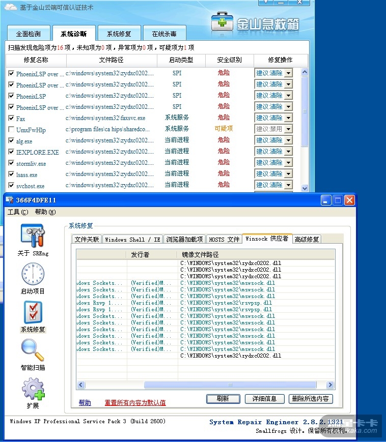 尽量去使用金山急救箱修复系统,这是目前唯一修复系统效果较好的工具了。