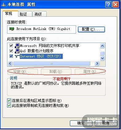打开“本地连接”属性,出现如下提示,IP地址不能修改。请高手帮帮忙!!!