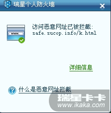 这个是恶意网址呀,被瑞星拦截了,是你访问的网站有问题呀。