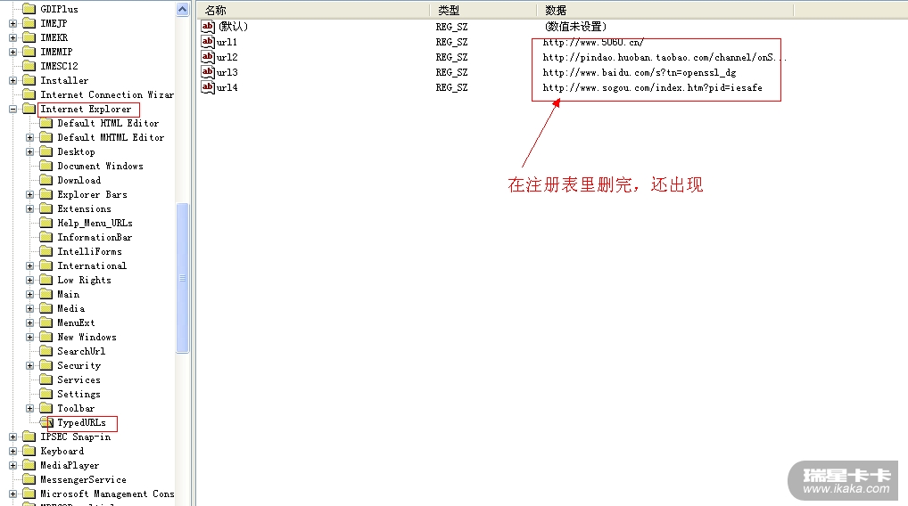 在安全模式下在注册表里删除后,还出现