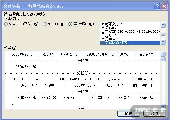 我的电脑中的office中的文档拷到U盘中,打开时显示:无法启动文件转换器,要求安装,安装后,出现一个选择代码的窗口,里面有各国的代码,其中有繁体中文和简体中文的各五六个代码名称,选择后显示文档,但都是乱码: