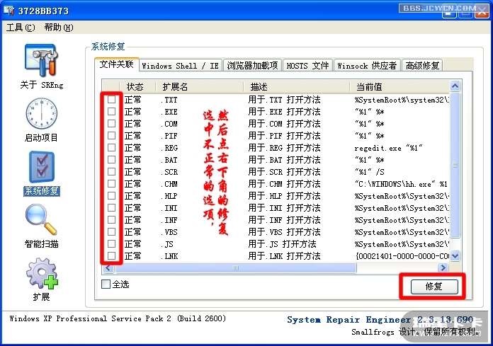 点击系统修复,就可以看到文件关联,按照图上说明即可修复